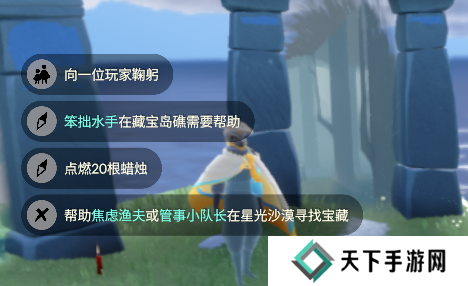 以上就是关于光遇3.13每日任务怎么做的全部内容了,今天的季节每日任务主要都刷新在暮土,大家快和小伙伴们一起去完成任务吧~