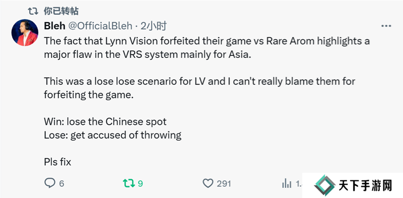 Bleh:“LVG放弃了与RA的比赛,这一事实凸显了VRS主要针对亚洲地区存在的一个重大缺陷。