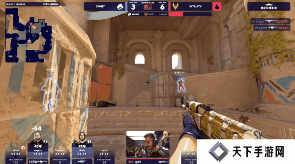 下半场作为进攻方的Spirit选择夹击B区,但是英国枪男mezii在包点贡献关键双杀,ropz再收下1v1残局拿下手枪局。Spirit因下包选择强刚,但Vitality通过动态防守抓住机会成功回防再得一分。下回合Spirit企图A区动粗,但ropz和ZywOo在A区瞬间瓦解对方突破手,Spirit始终无法获得人数优势,Vitality连得12分拿到赛点。由于分差巨大,在Spirit挣扎了三分后由ZywOo结束了比赛。
