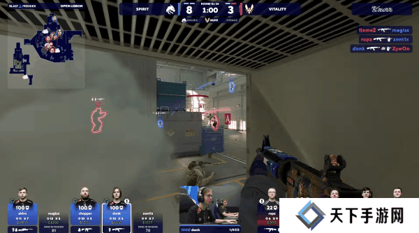 BLAST 里斯本公开赛2025四分之一决赛,Vitality迎战Spirit。图一Spirit开头建立的优势没能保持,被Vitality以无解的正面连拿12分后轻松结束比赛。来到图二的Spirit及时调整了状态,借助防守方优势成功浇灭对手手感,轻松扳回一城。图三Vitality依靠ZywOo的神级发挥无数次拿到首杀、赢下残局,最终以微弱的优势结束了比赛。