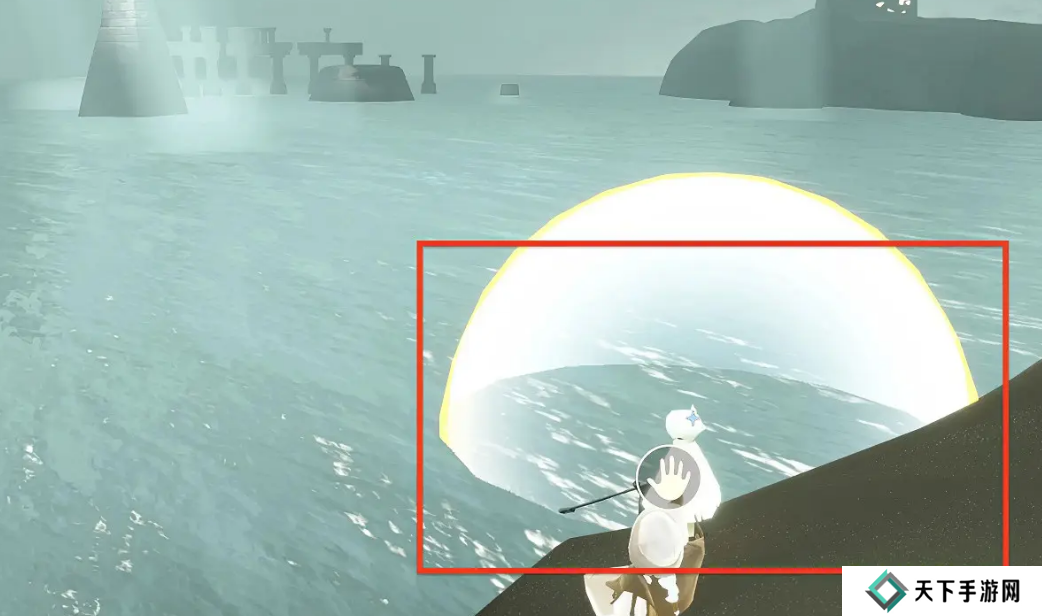 2.在蓝色光标大叫时点击钓鱼并将小鱼递交给焦虑渔夫即可完成
