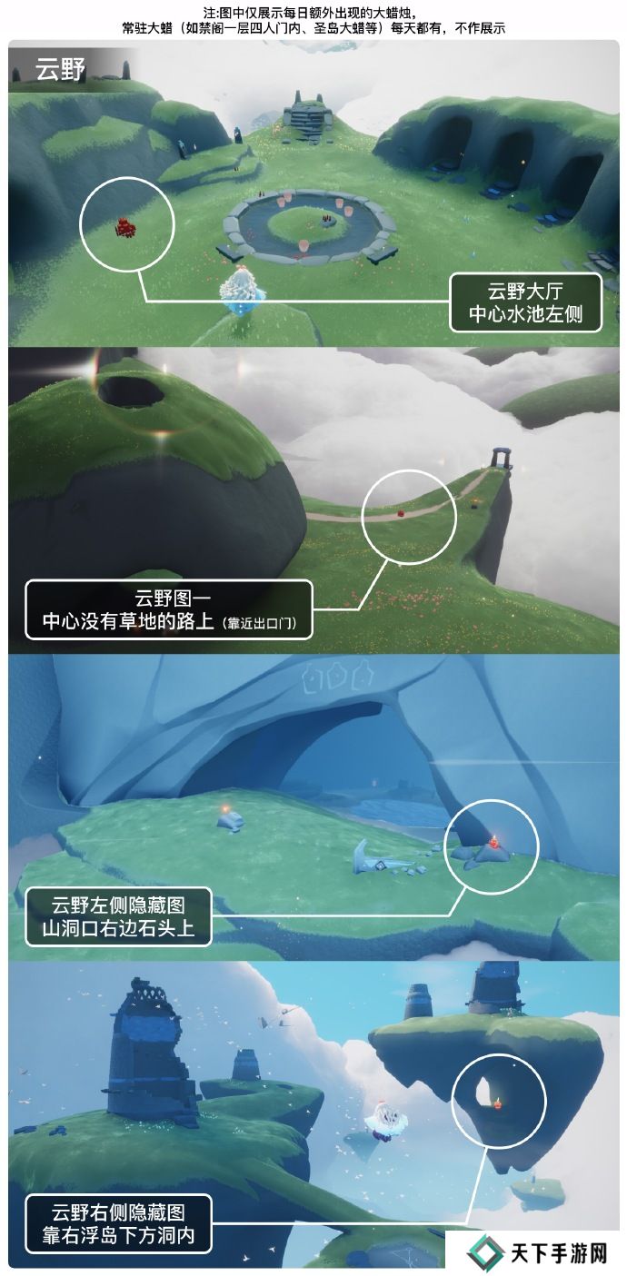 光遇今天的大蜡烛刷新在了云野这张地图,那么大家知道3.13每堆大蜡烛的具体位置在哪里吗?下面为大家带来光遇3月13日大蜡烛位置的具体内容,感兴趣的玩家们千万不要错过哦!