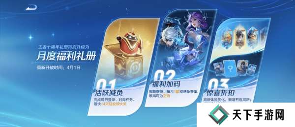 荣耀水晶商店更新,自然少不了积分夺宝打折,而每日充值的活动自然也要跟上,两个活动都是4月1日和兵线皮肤一并上线。