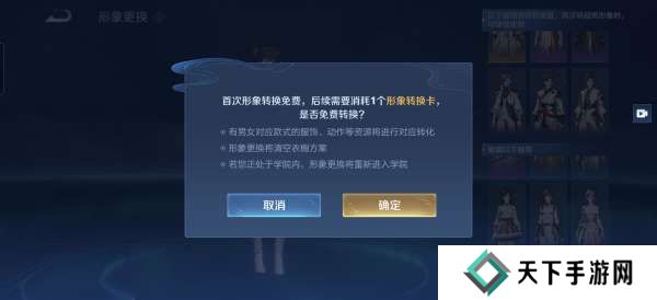 点击英雄-任意元流之子-皮肤-衣橱-形象即可免费更换性别,实装也将全面更新,但每90天才可以转换一次,也就是每个赛季最多转一次。