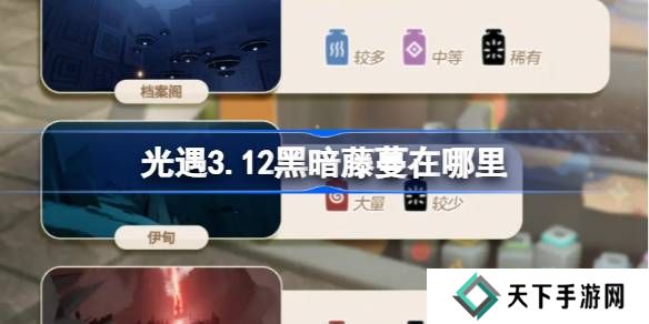 光遇彩染季任务四已经开启,新增了几个地点获取染料哦!大家可以前往不同地图获取染料,那么3月12日的黑暗藤蔓在哪里呢?下面为大家带来的具体内容,感兴趣的玩家们千万不要错过哦!