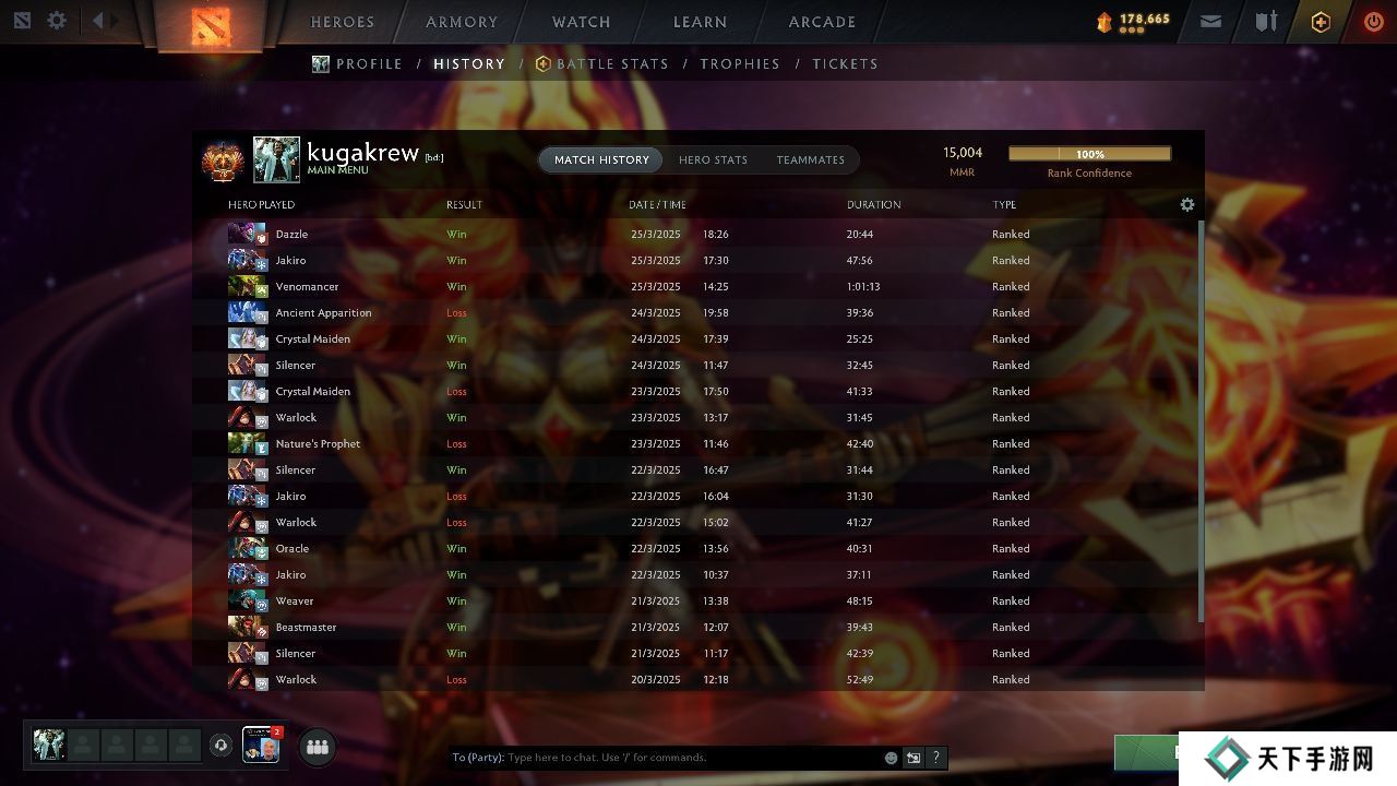 Dota 2战队One Move的选手Rein天梯积分达到了15000分。