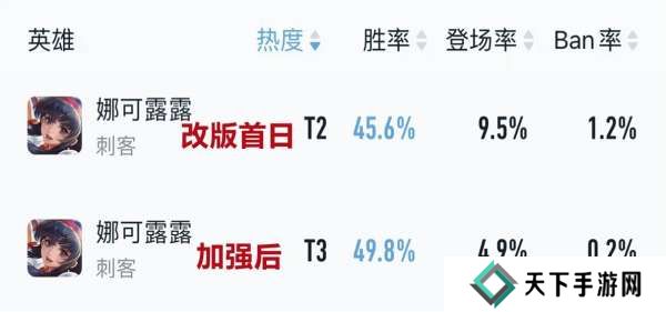 现在胜率已经成功超越改版前,可以看出策划想打捞娜可露露的决心,这次加强后的“牢露”或许真的有机会起飞了?