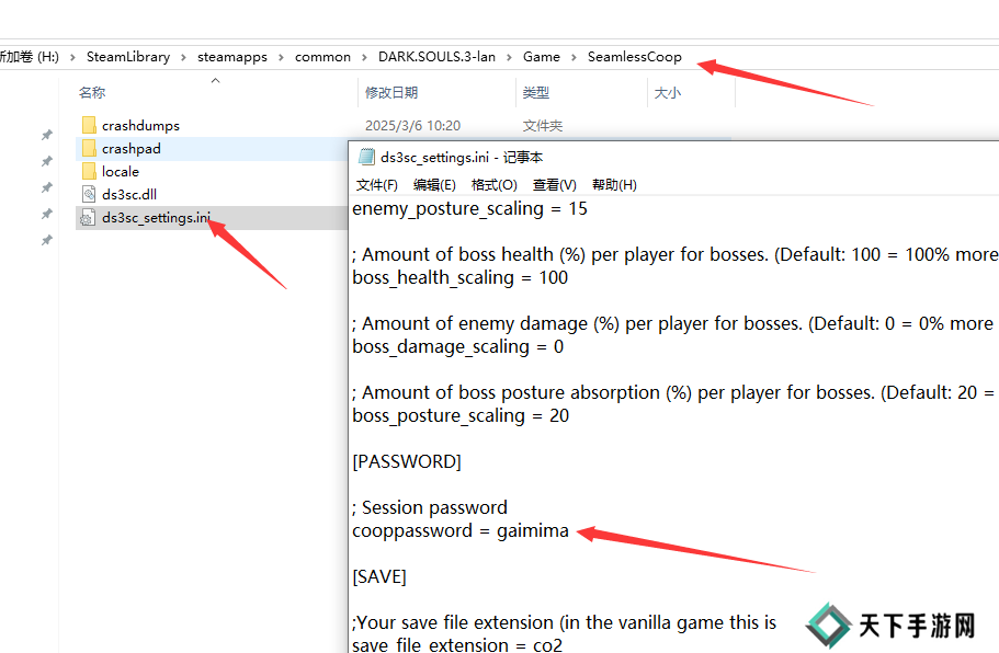 联机需要设置相同的密码:记事本方式打开游戏目录GameSeamlessCoopds3sc_settings.ini,找到cooppassword = gaimima,把“ gaimima”改成自己想要的密码,设置相同的密码才能联机。