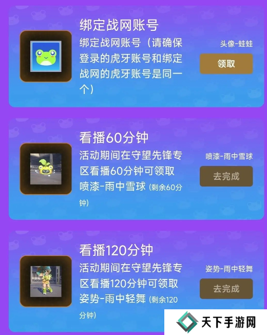1、绑定账号后,在指定主播的直播间观看一段时间,就可以获得守望先锋的游戏奖励!奖励内容包括: