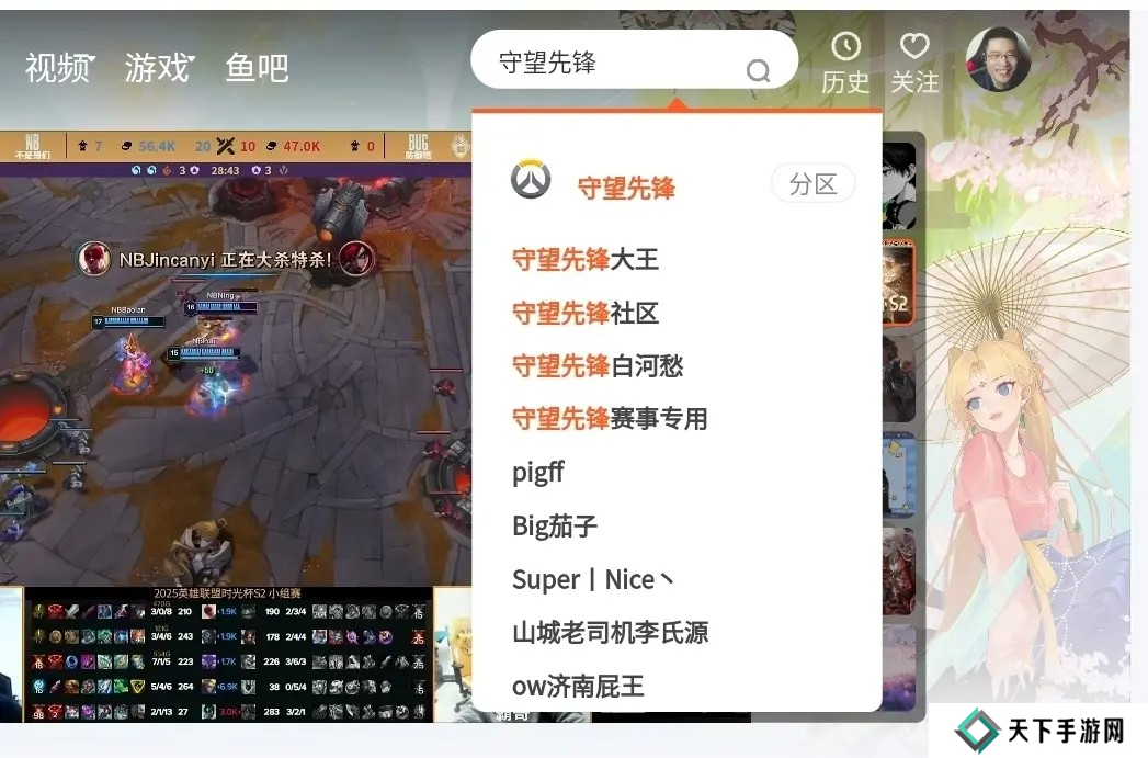 >进入斗鱼官网后,在右上角搜索“守望先锋”,进入守望先锋专区。