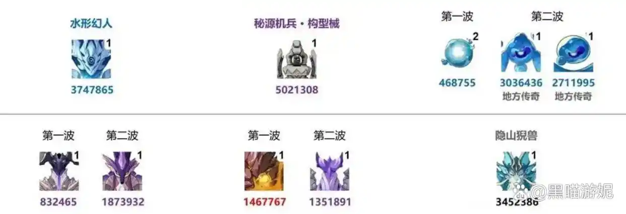 这次解包主打的还是12层,毕竟12层之前整体的通关难度都不算是很高,难的主要还是在12蹭,而具体的配置,上班是水形幻人+秘源机兵+纯水元素。下版这边则是以隐山猊兽。