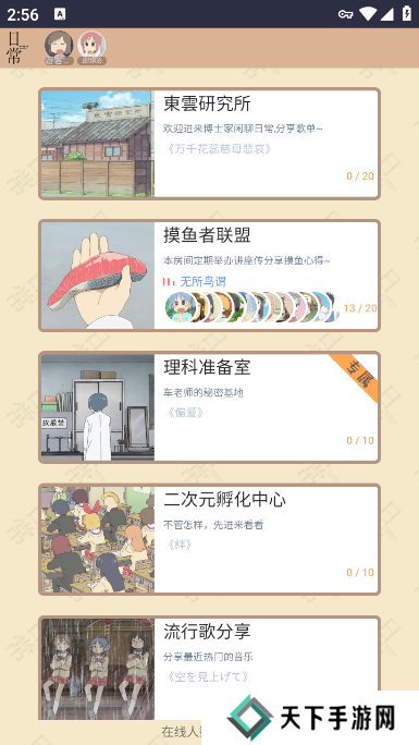 日常聊天室app是一款非常不错的动漫主题聊天软件,您可以在平台获取到非常多的动漫同好,在这里建造专属于你们的话题,还可以和网友们一起听听歌聊聊天,还是很有意思的,现在就来下载吧!