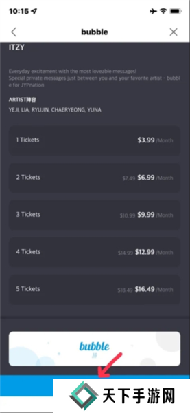 这边的购买其实不是指要下载JYP bubble APP的话必须付钱,下载APP是免费的,要购买的是“艺人的聊天室”,具体的操作方式请参考以下购买步骤