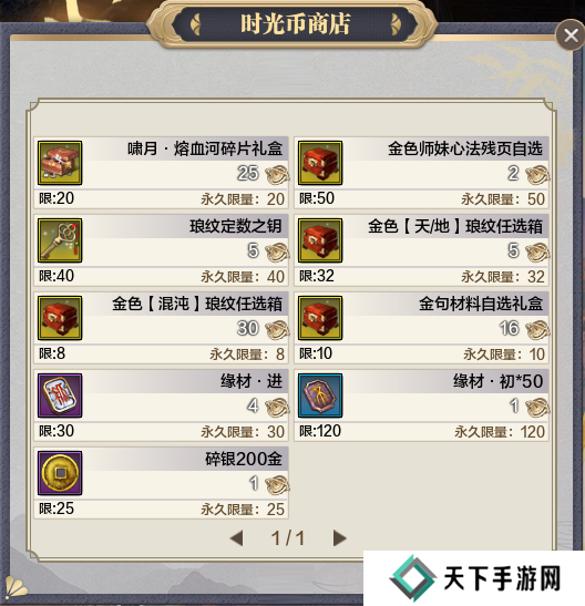 侠士参与活动时可获得时光币,使用时光币可以在兑换商店处兑换丰厚奖励。