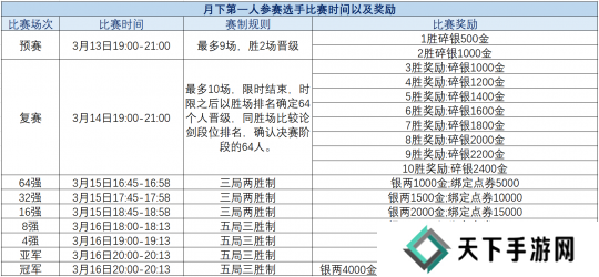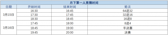 初赛时间:3月20日19:00—21:35(最多参与6场,决出64强战团)