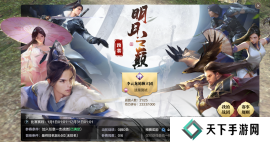 月下第一人后续赛事、跨区跨服20V20的多人赛事“明月之巅”再次来临,欢迎各位少侠组建属于你自己的战团,带领你的战团伙伴一起去赢得全大区独一无二的的冠军荣誉。