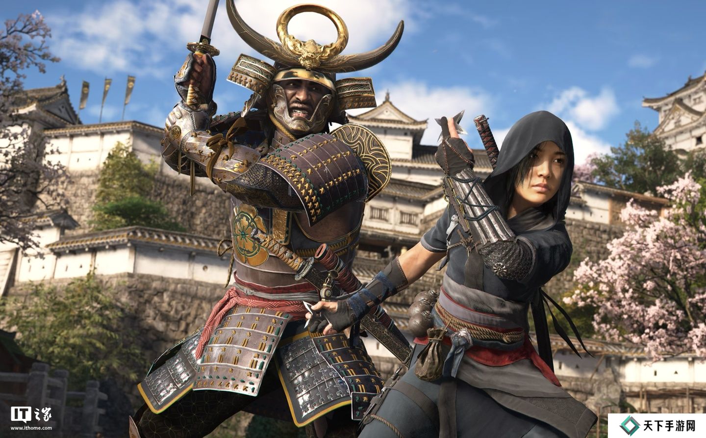 《刺客信条:影》是一款日本封建时代背景的“刺客信条”IP游戏,玩家可以探索“壮观的城下町和繁华的港口”,并选择扮演忍者“奈绪江”/武士“弥助”两种角色来完成任务。
