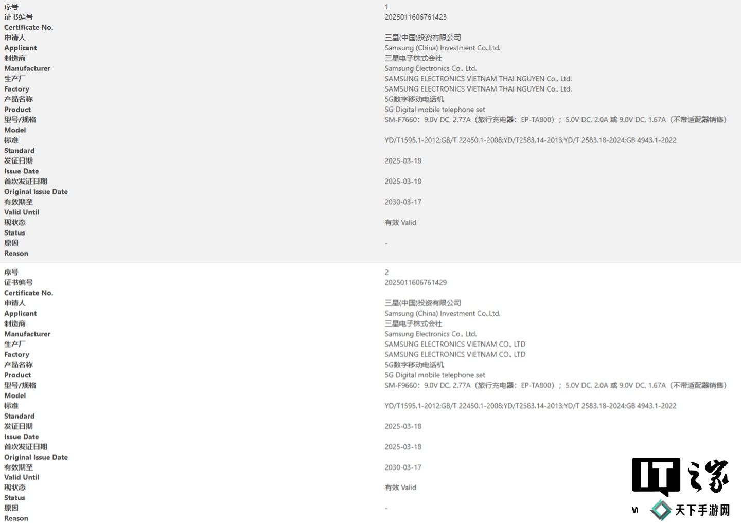 目前,三星 Galaxy Z Fold7 大折叠手机和 Galaxy Flip7小折叠手机均已通过国家3C质量认证,型号分别为SM-F9660 / SM-F7660,两款手机均支持25W充电,不过相应机型的其他确凿规格尚未得到确认。
