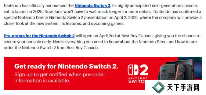 值得注意的是,尽管百思买方面尚未公布预购通道开启的具体时间点,但其选择的预购开放日期恰好与任天堂举办的一场专门介绍 Switch 2 相关信息的“任天堂直面会”(Nintendo Direct)为同一天。不过,目前加拿大百思买已删除这一公告。