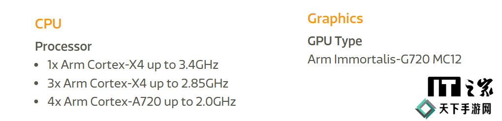 台积电 4nm,X4+A720 全大核架构:1*3.21GHz X4 + 3*3.01GHz A720 + 2*2.80GHz A720 + 2*2.02GHz A720