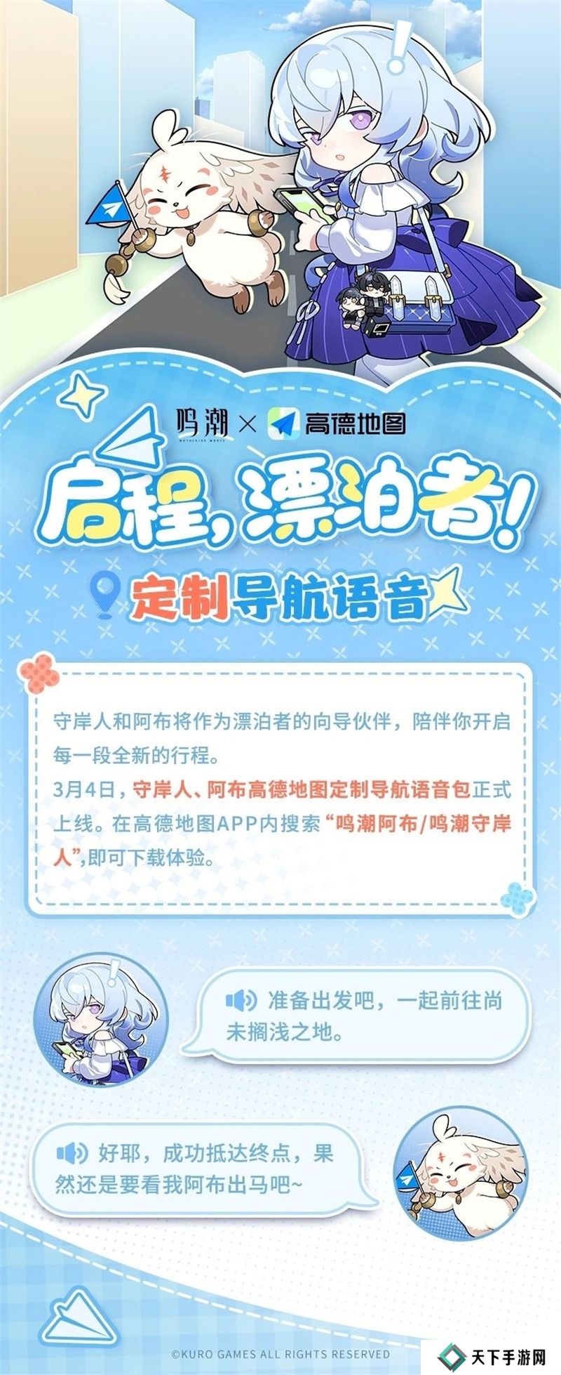 游戏《鸣潮》与高德地图的联动活动主要包括上线“守岸人”和“阿布”的定制导航语音包和导航主题皮肤。