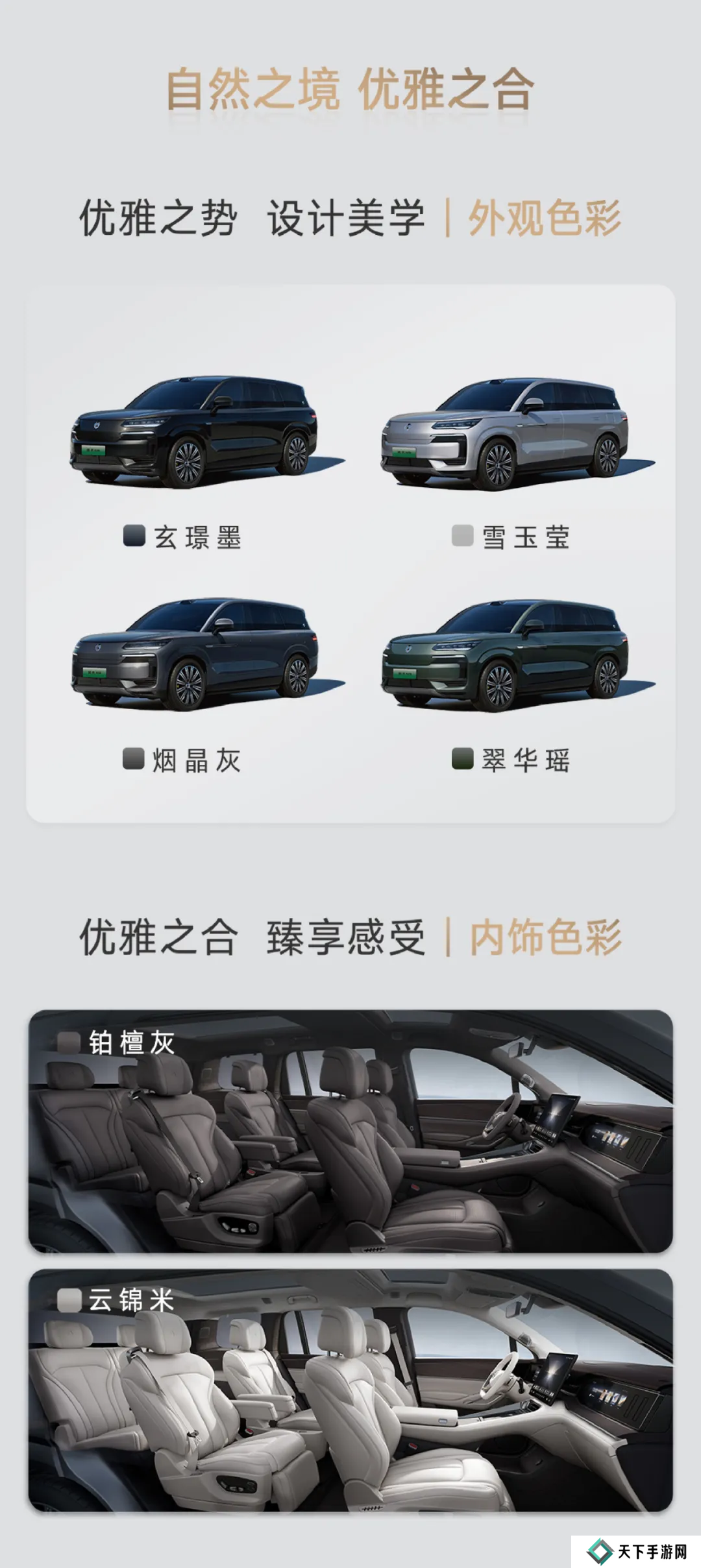 外观方面,腾势 N9 采用比较方正的造型,采用狭长的大灯组与封闭式前格栅相互搭配,两侧预留导流槽,前包围采用双下分层的散热通风开口设计,整体造型更具厚重感。同时,该车还配备隐藏式门把手、电动侧踏。提供玄璟墨、雪玉莹、烟晶灰、翠华瑶四种外观配色,以及铂檀灰、云锦米两种内饰配色,长宽高分别为 5258/2030/1830mm,轴距 3125mm。此外,腾势 N9 提供有传统造型外后视镜和流媒体外后视镜。