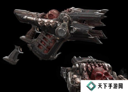 在最近PCGamer的访谈中,《毁灭战士:黑暗时代》的游戏总监雨果·马丁和制作人马蒂·斯特拉介绍了预告片里那把极其凶悍的枪:它不断地把骷髅头塞进碎木机,然后将粉碎后的骨片朝前方发射出去。