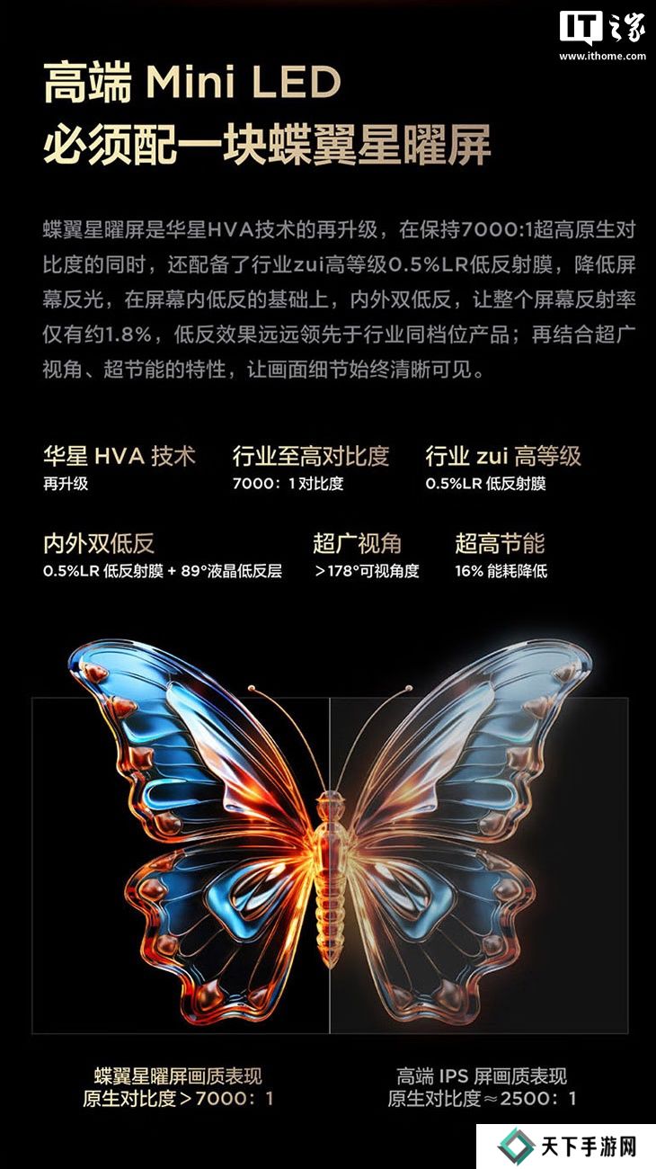 系列电视面板为4K超频288Hz(原生144Hz)基础规格,均拥有 7000:1静态对比度,其他方面细节有所差异: