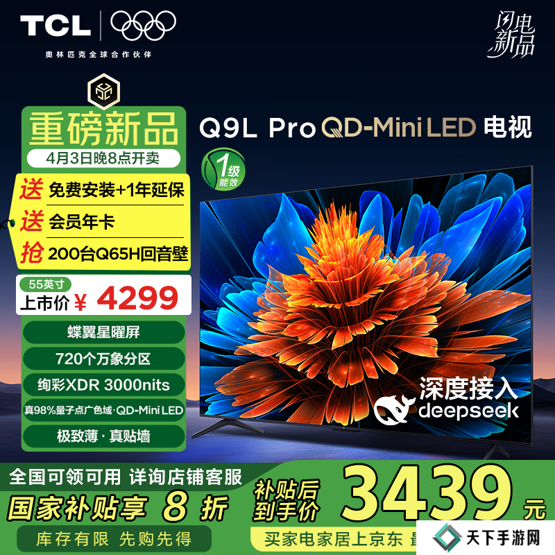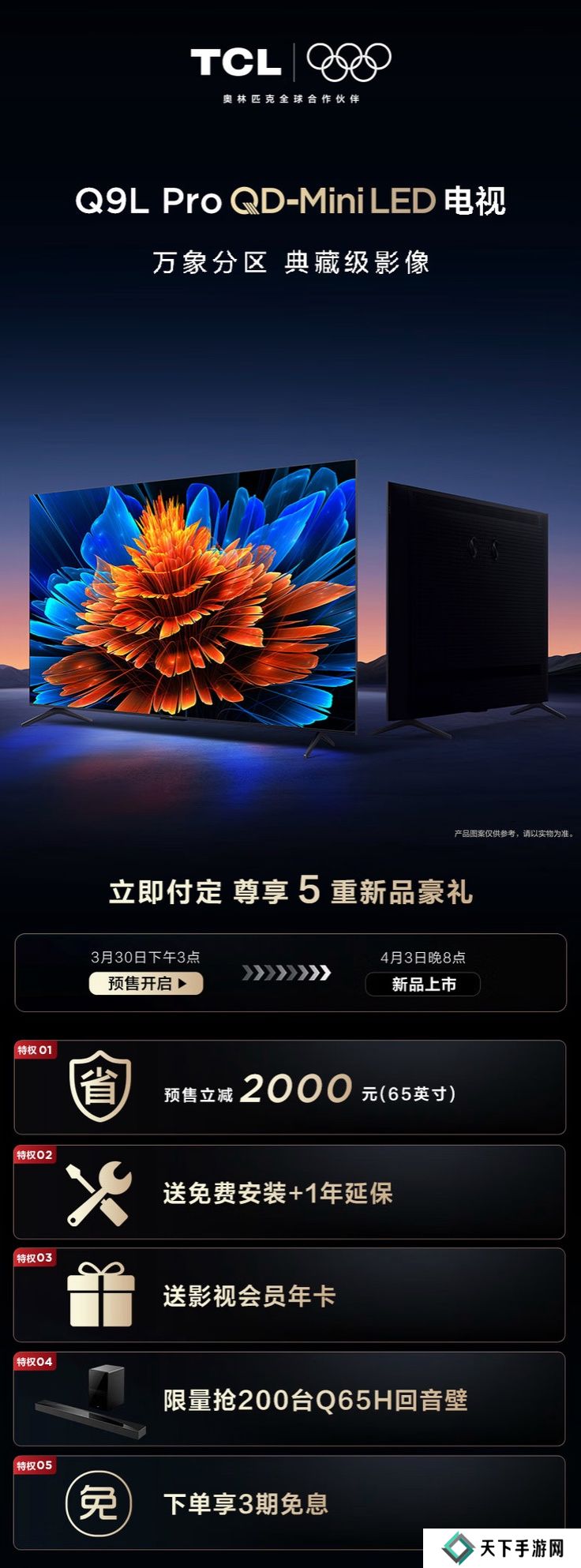 京东 TCL Q9L Pro 系列电视 4299 元直达链接