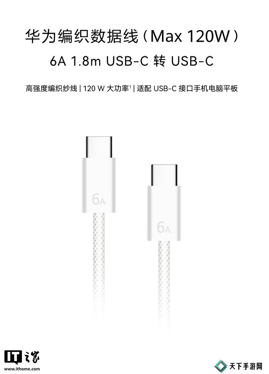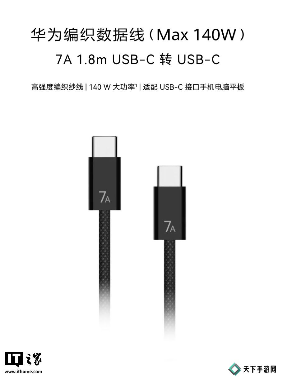 本站 3 月 29 日消息,华为现已在京东上架1.8米长的USB-C编织数据线(充电线),分为 6A(120W)及 7A(140W)版本,定价分别为99元 / 129元。