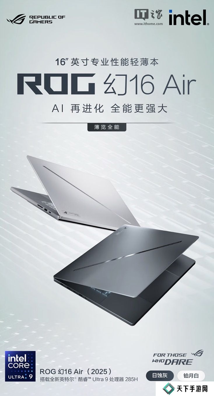 本站 3 月 29 日消息,华硕现已在京东上架 ROG 幻16 Air 2025笔记本,该机搭载“酷睿Ultra 9-285H + 32GB RAM + 1TB存储空间+ RTX5080显卡”,将于 3 月 31 日首销,定价为23999元。