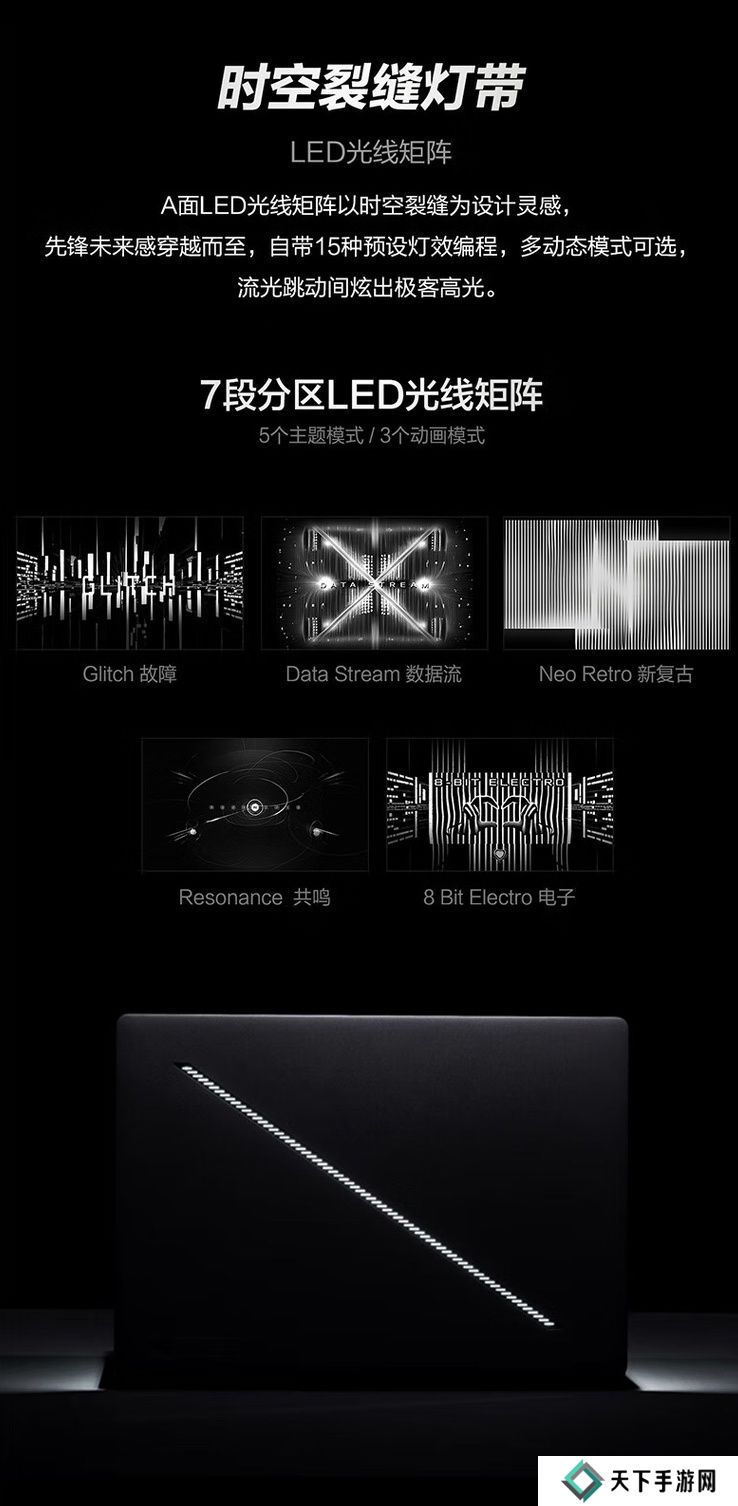 这款笔记本可选铂月白 / 日蚀灰两种配色,笔记本使用航空铝一体化机身,A 面配备ROG光显矩阵灯效,整体重量1.95千克,厚度1.49厘米,内置6扬声器,配备90Wh电池,支持100W PD快充。