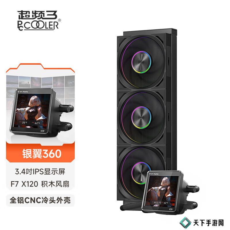 本站3 月 28 日消息,超频三旗下银翼 DT360 ARGB Display一体式水冷现已在京东开启首销。该散热器冷头部分采用 CNC 阳极氧化喷砂工艺处理的铝合金,配备磁吸式可移动屏显模块,享受 8 年质保,定价为 1299 元。