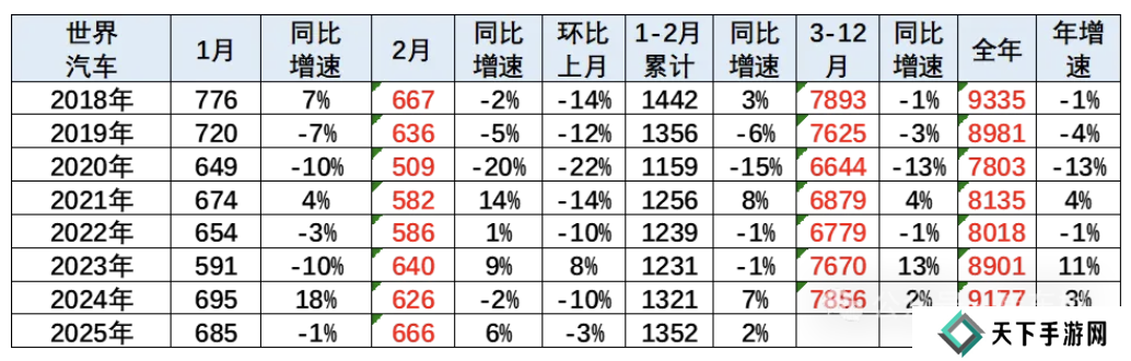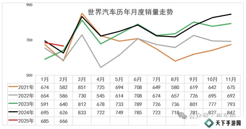 本站 3 月 29 日消息,乘联分会崔东树发文,透露 2025 年 2 月的世界汽车销量达到 666 万台,同比增 6%。