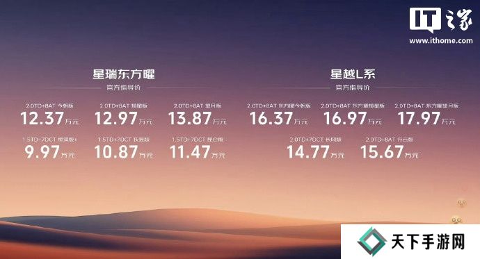 本站 3 月 20 日消息,吉利星越 L 新增行云版和东方曜・今朝版两款车型,官方指导价分别为 15.67 万元和 16.37 万元,两款车型均搭载了 2.0TD 高功率发动机。