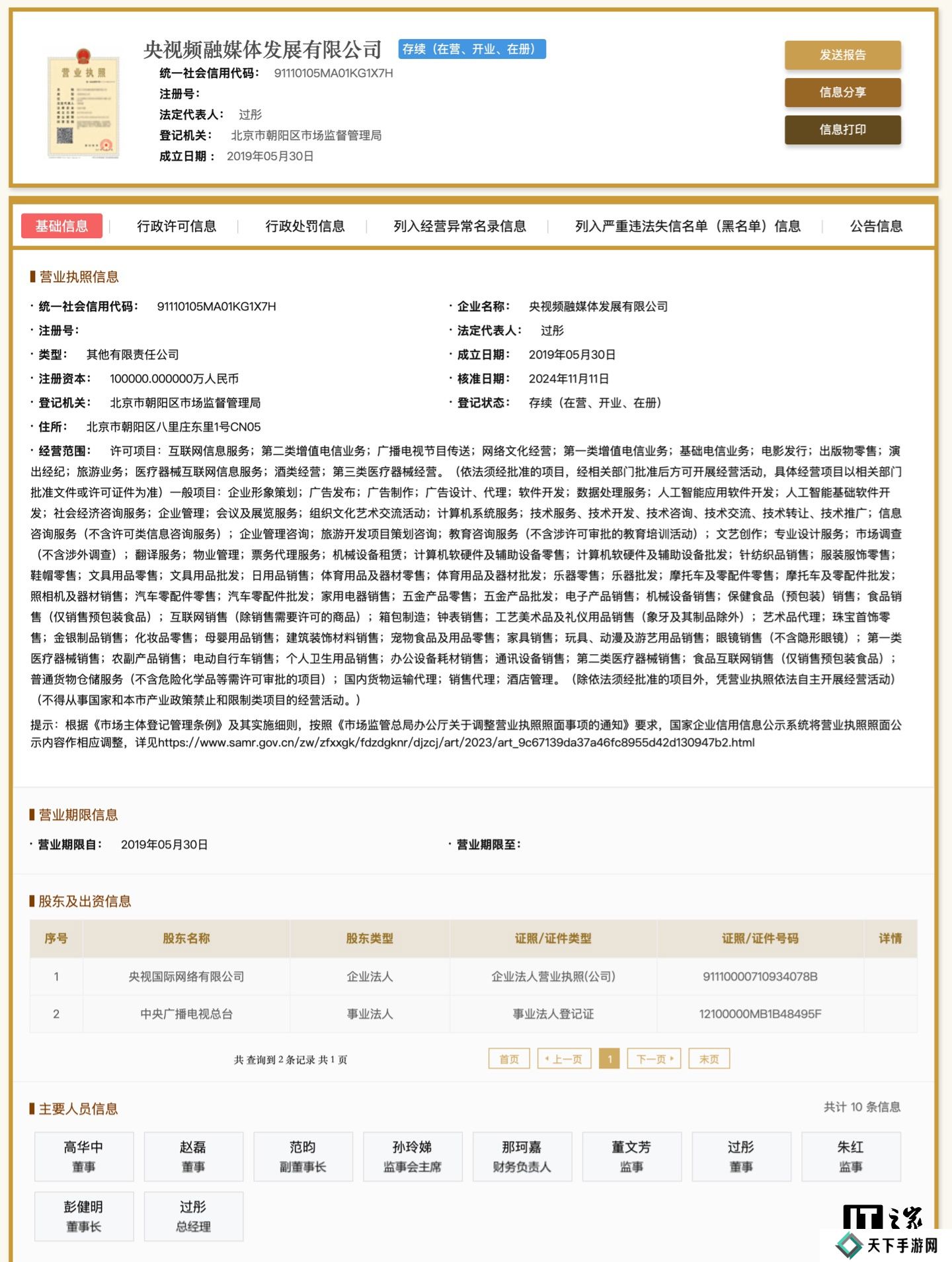 本站注意到,央视频融媒体发展有限公司由中央广播电视总台持股 90%,央视国际网络有限公司持股 10%。